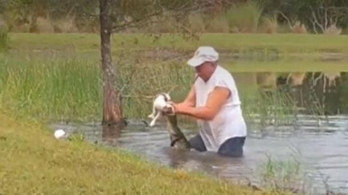 TRIBUNTRAVEL.COM - Seorang pria yang menyelamatkan anjing kesayangannya dari serangan aligator menjadi viral di medsos.