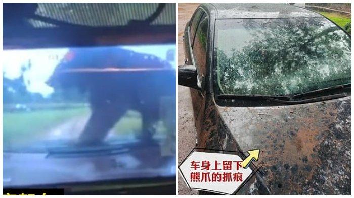 Pasalnya, mobil mereka diserang oleh seekor beruang hitam dan naik ke kap mobil depan sedangkan mereka terjebak di dalam mobil.