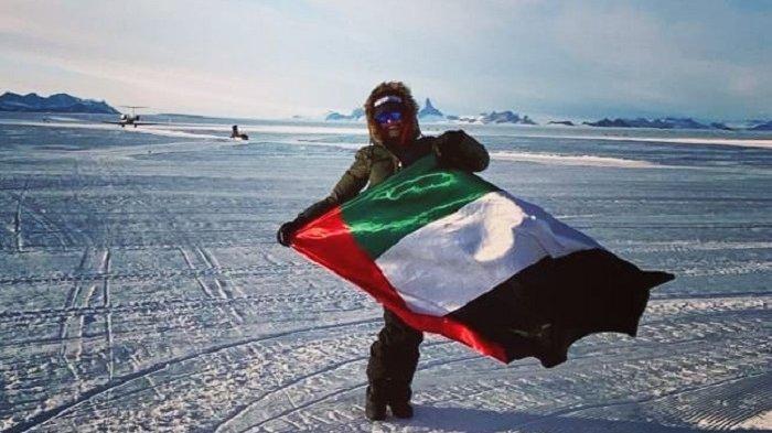 Berangkat dari Antartika, Al Romaithi mengibarkan bendera UEA di benua paling selatan di dunia sebelum terbang ke Afrika.