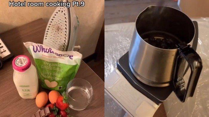 Setrika pakaian di kamar hotelnya berfungsi ganda sebagai wajan.