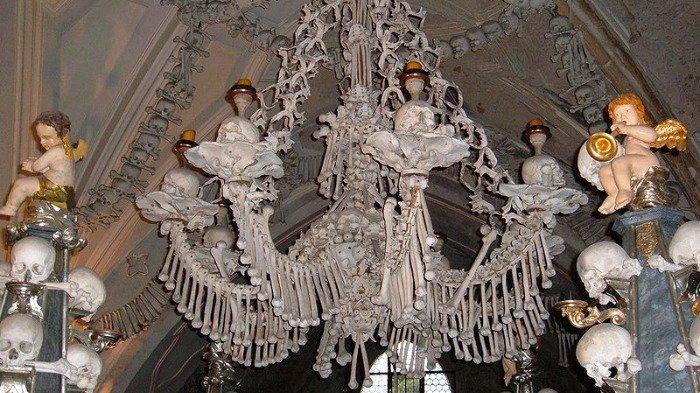 TRIBUNTRAVEL.COM - Sedlec Ossuary, atau dikenal sebagai Gereja Bone atau 'The Church of Bones', adalah kapel Katolik di pinggiran Kutna Hora di Republik Ceko.
