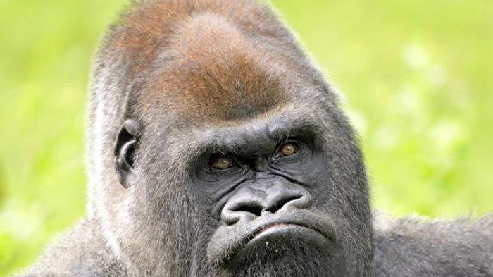 Gorila Kebun Binatang Kansas City bernama Radi difoto tampak gelisah oleh keadaan, seperti gorila di Taman Nasional Virunga Republik Demokratik Kongo.