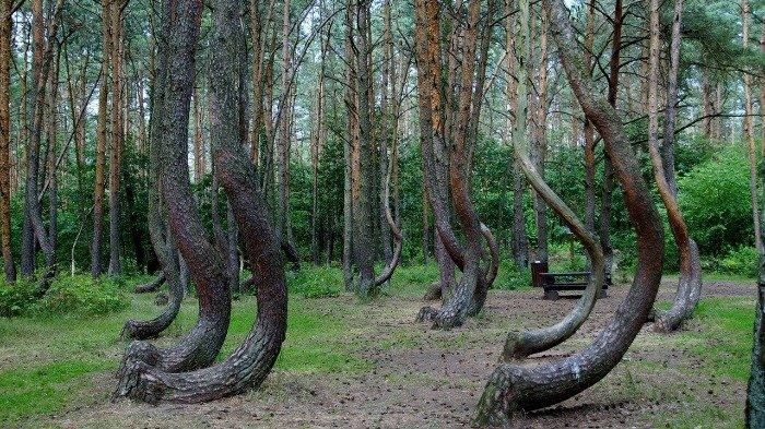 Sebuah hutan dekat kota Polandia Gryfino di West Pomerania telah menjadi objek wisata karena bentuk pepohonannya yang unik.