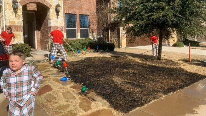 Semuanya terkendali sampai anak laki-laki itu berlari ke dalam rumah memberi tahu kami bahwa salah satu sudut halaman terbakar dan lampu Natal sedang mencair!"