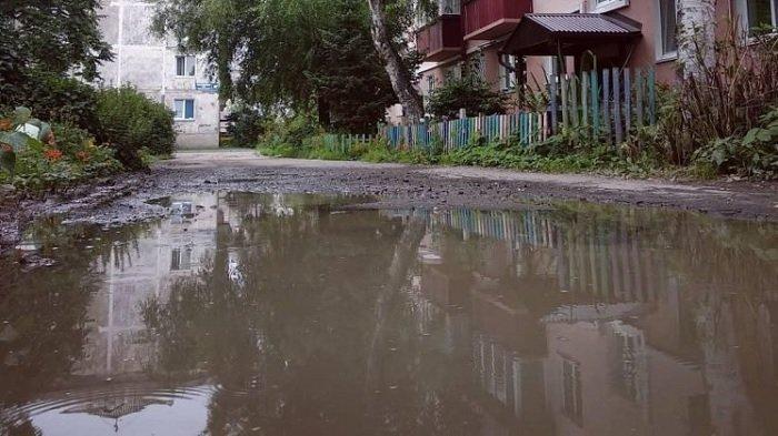 "Halo semuanya! Saya genangan air di dekat Jalan Tikhookeanskaya 10, Yuzhno-Sakhalinsk.