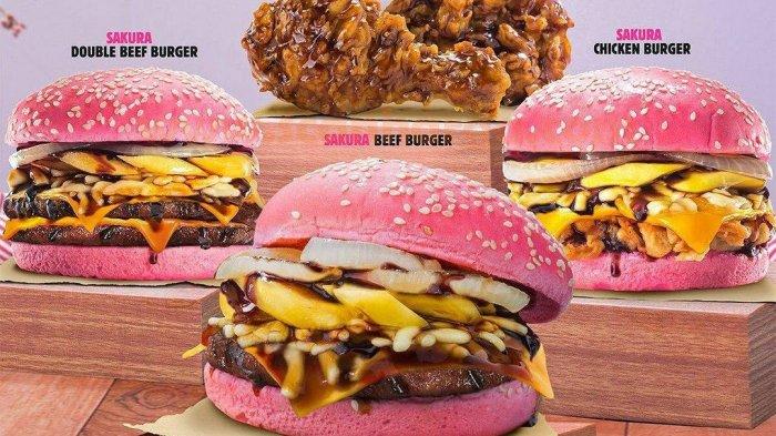 Sakura Collection menawarkan burger dengan bun berwarna pink.