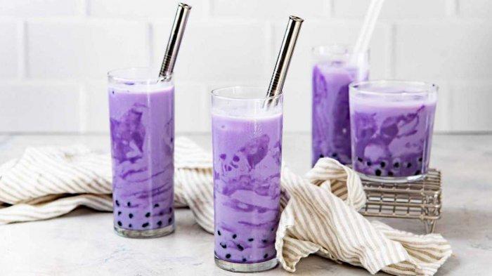 TRIBUNTRAVEL.COM - Taro boba atau taro bubble tea adalah salah satu varian minuman yang disajikan bersama bola tapioka.