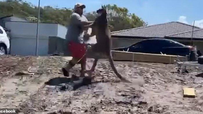 Kangguru tersebut terlihat memukul korban dengan cakarnya dan kemudian menendangnya ke tanah.