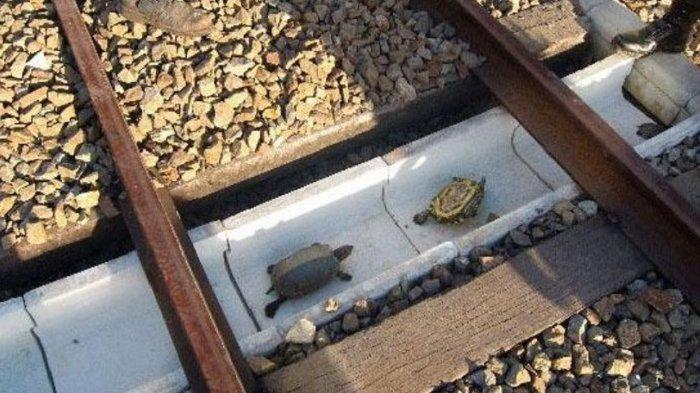 Sering Ada Kejadian Kura-Kura Terjepit di Rel Kereta Api