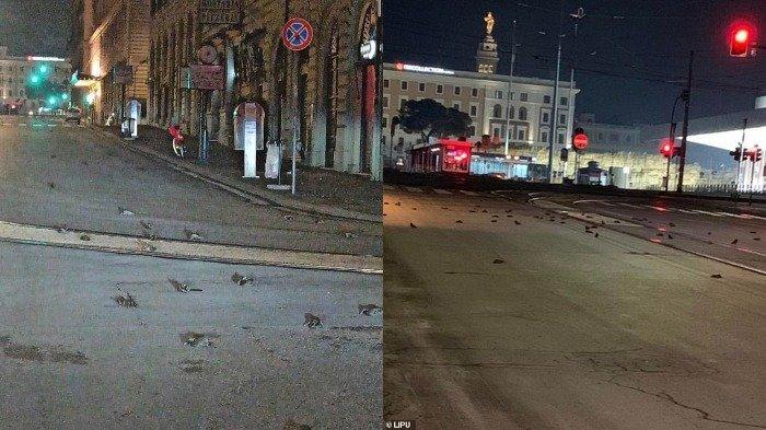 Ratusan burung ditemukan mati berserakan di jalan-jalan Roma, Italia.