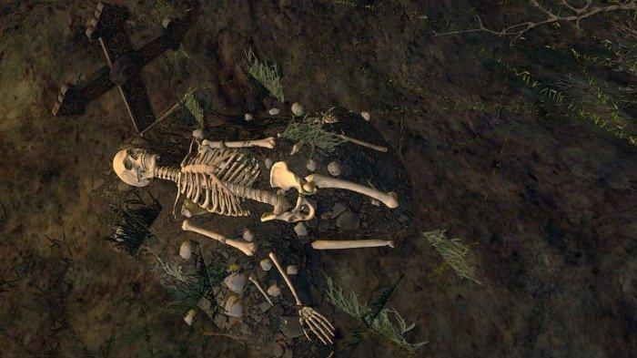 Tengkorak tua dan pecahan tulang mencuat dari lumpur setinggi enam kaki yang pernah menyelimuti daerah tersebut.