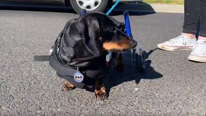 Diketahui, hewan peliharaan berupa anjing ini memiliki kaki belakang yang lumpuh sehingga tidak bisa berjalan dengan normal.