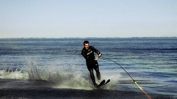 Waterski permainan air yang cara bermainnya mirip dengan bermain selancar, yang membedakan adalah pada papan skinya.