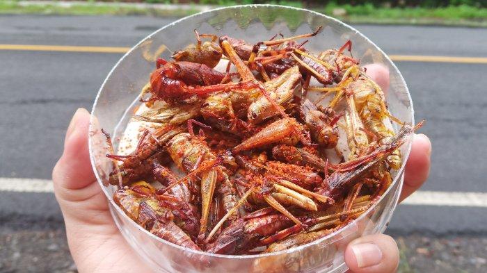TRIBUNTRAVEL.COM - Buat kamu para pecinta kuliner ekstrim, wajib rasanya mencoba sambelan belalang dari Kabupaten Mojokerto.
