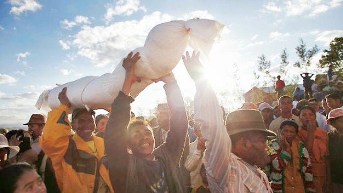 Orang-orang Malagasi Madagaskar melakukan tradisi yang tidak biasa ini yang disebut Famadihana.