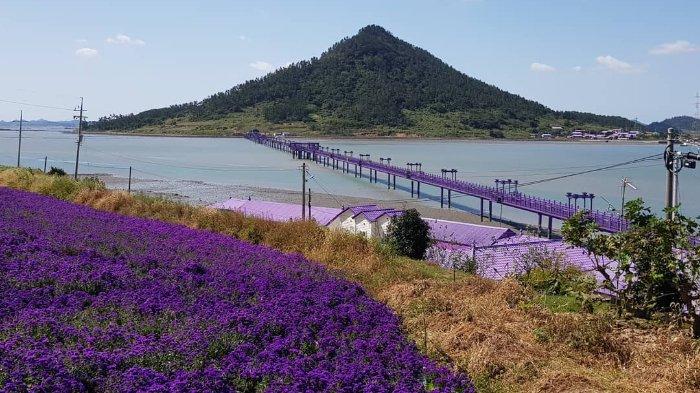 Kamu bahkan bisa berjalan di antara dua pulau, yakni Pulau Banwol dan Pulau Bakji melalui jembatan 'ungu'.