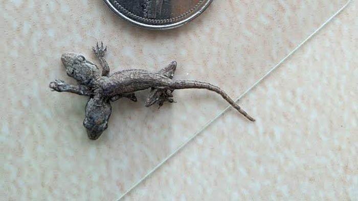 TRIBUNTRAVEL.COM - Cicak berkepala dua dan berkaki lima ditemukan seorang warga Desa Kauman, Kabupaten Ponorogo, Jawa Timur.