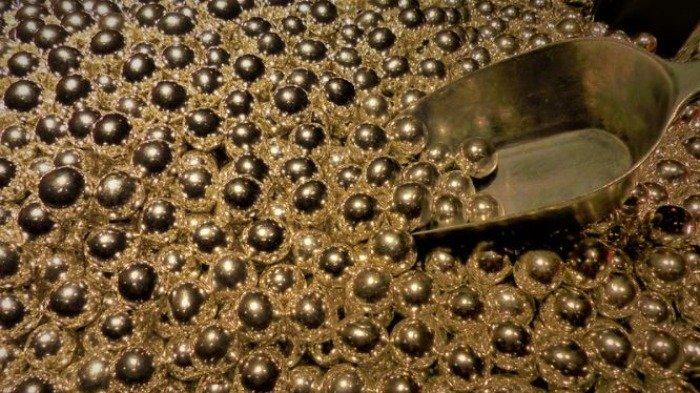 Butiran emas itu dicuci supaya terpisah dari tanah dan material lainnya.