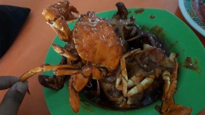Menunya mulai dari kepiting (jantan, super, telur), cumi, udang, criping, kerang dara, kerang hijau, kakap, kerapu, dorang, bawal, baronang, hingga ikan mubara (kue).