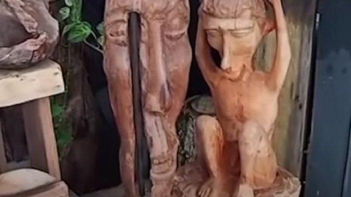 TRIBUNTRAVEL.COM - Seorang pengrajin bernama Zainal mengolah limbah menjadi sebuah karya seni ukir patung yang indah.