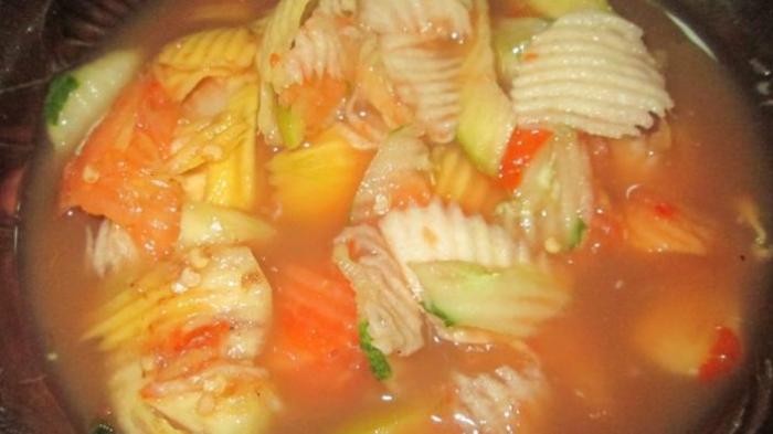 Makanan lezat ini terbuat dari campuran sayuran dan daging yang dimasak dengan bumbu khas.