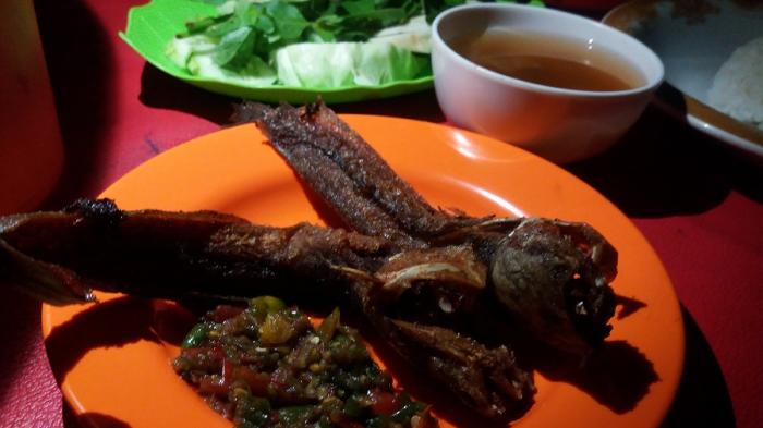 Kedai makan pecel lele di Jakarta yang pertama ini menawarkan menu lele goreng yang garing dengan sambal yang pedas.