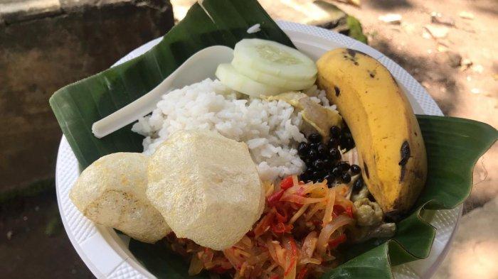TRIBUNTRAVEL.COM - Pagi itu, Sulistyo terlihat membawa tenong atau wadah keranjang bambu berisi ingkung atau ayam utuh dibumbu kuning, srundeng, mi kering, wajik serta aneka jajan pasar lainnya.