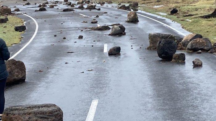 Sementara itu, batu-batu besar yang terlempar melintasi jalan di barat daya negara bagian itu dekat Warrnambool.