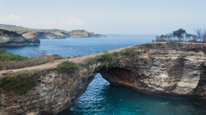 Laut Rusak Pasih Uug Nusa Penida merupakan sebuah tebing yang tinggi dan berlubang pada bagian tengah karena fenomena alam.
