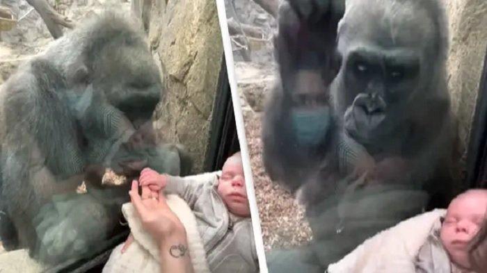 TRIBUNTRAVEL.COM - Gorila dewasa di kebun binatang terekam melakukan momen menyentuh dengan seorang ibu dan bayinya.