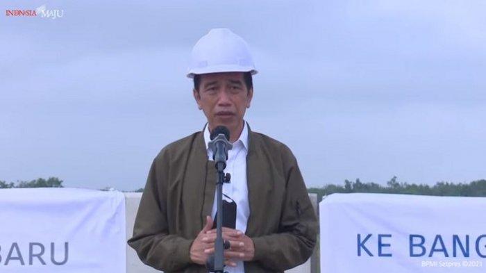 Diketahui, Jokowi tengah memberikan sambutan saat meninjau ruas tol Dumai-Pekanbaru.