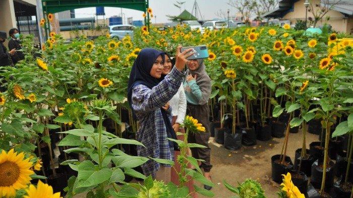 Para pengunjung dapat berfoto dengan spot hamparan bunga matahari yang bermekaran.