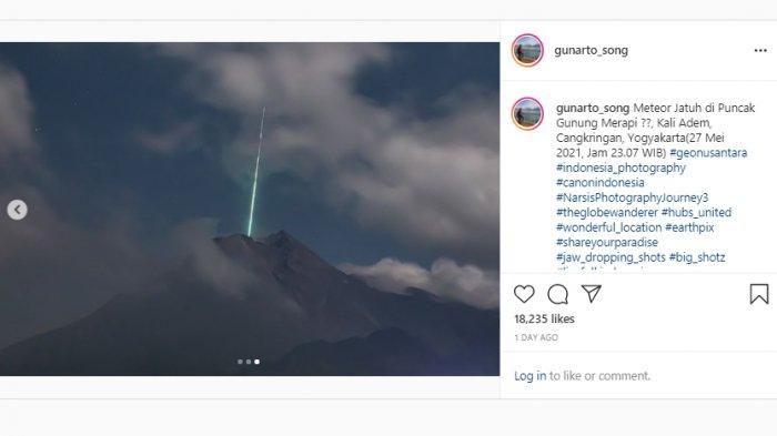 "Wah, apa nih yang mengarah ke gunung Merapi? Meteor kah?" tulis akun Instagram @gunungindonesia.