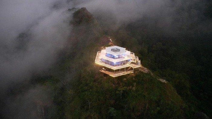 Tumpeng Menoreh memiliki bentuk bangunan yang unik yaitu heksagonal dan mirip tumpeng.
