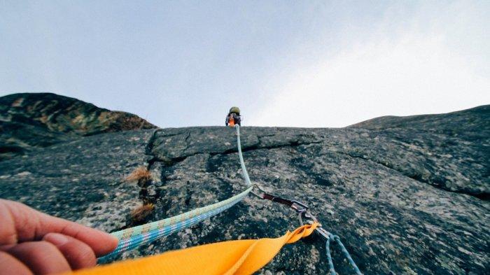 Mereka nekat panjat tebing demi membuat konten video kegiatan liburan.