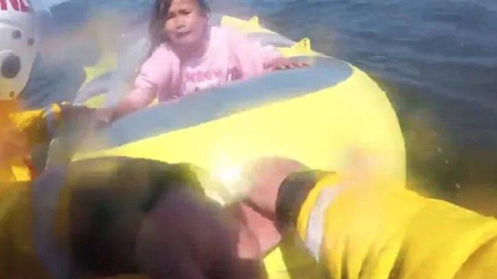 Beruntung speedboat penyelamat berhasil mengevakuasi dan membawanya ke pantai.