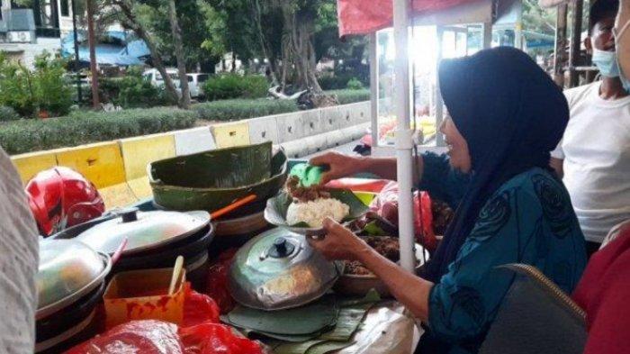 Meskipun hanya berjualan di gerobak, Nasi Gudeg Bu Ijah selalu ramai pembeli.