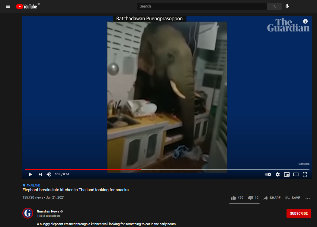 Dlam sebuah video yang dibagikan melalui channel YouTube The Guardian News, kepala gajah itu terlihat mengobrak-abrik laci dapur.