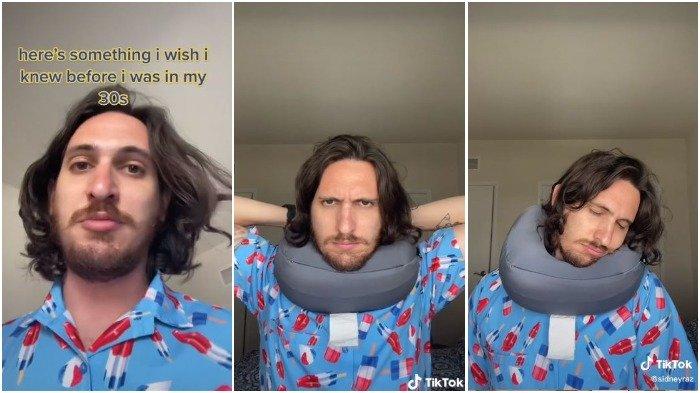 Oleh sebab itu seorang pengguna TikTok baru-baru ini membuat konten tentang "cara yang benar menggunakan bantal leher bentuk U".
