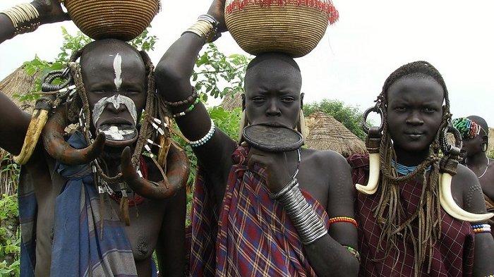 TRIBUNTRAVEL.COM - Suku Mursi banyak dijumpai di Ethiopia selatan, mereka tinggal di antara Sungai Omo dan Sungai Mago.