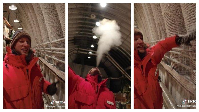 Dalam videonya, JoeSpinsTheGlobe menunjukkan orang dapat menghirup uap air di dalam ruangan yang dingin.