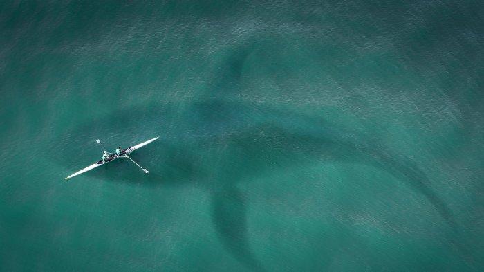 "Ya Tuhan," seseorang dapat terdengar berteriak saat hiu besar itu perlahan-lahan berenang melewatinya.