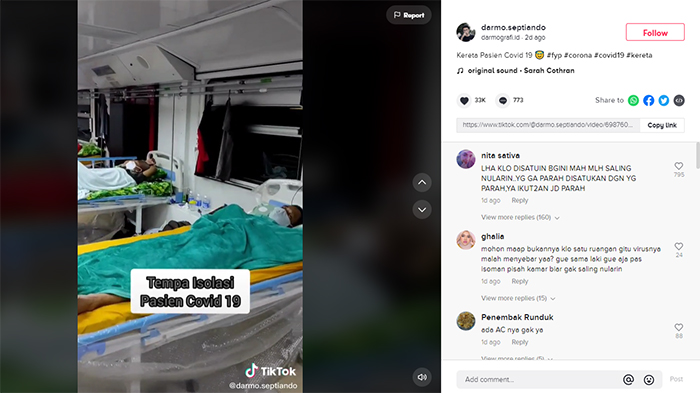 Dalam video pertama ia mengunggah video dengan judul "Kereta Pasien Covid 19".