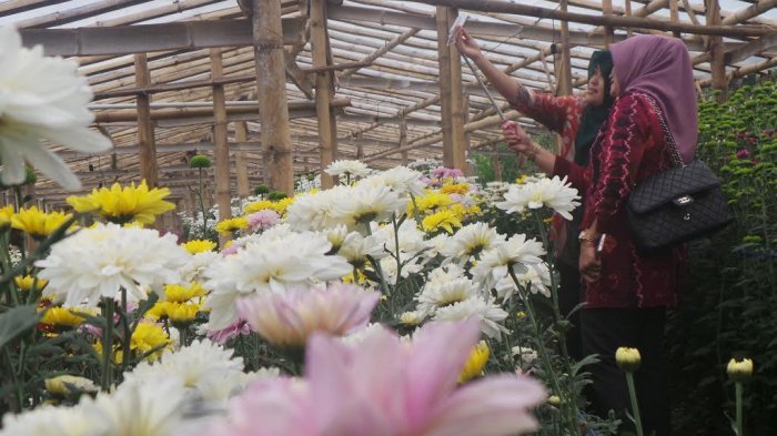 Tak hanya itu, wisatawan juga bebas berswafoto di antara hamparan bunga krisan.