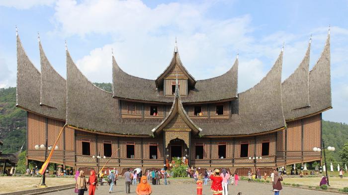 Istana Pagaruyung merupakan tempat wisata di Sumatera Barat yang menyajikan rumah adat Minang, Rumah Gadang.