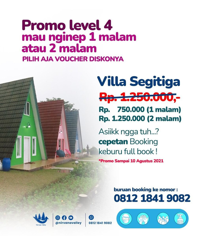 Dari pantauan TribunTravel di akun Instagram @nirvana.valleyresorts, Jumat (6/8/2021), berikut promo menginap di Villa Segitiga Nirvana Valley Resort: