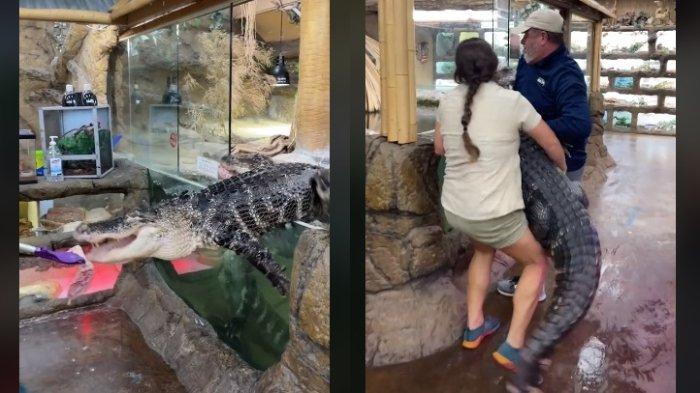 Reptile Zoo baru-baru ini membagikan video di TikTok yang memperlihatkan stafnya bersiap memberi makan dua buaya.