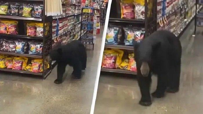 Tidak ada yang terluka akibat kemunculan beruang di lorong supermarket ini.