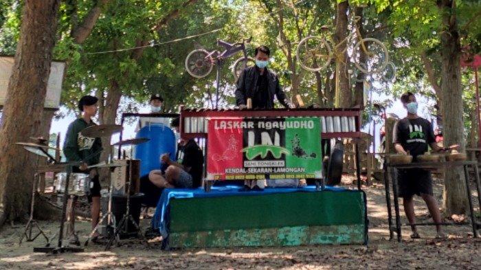 Grup musik yang dimaksud adalah Laskar Ngayudho yang membawakan seni musik tongklek khas Lamongan.