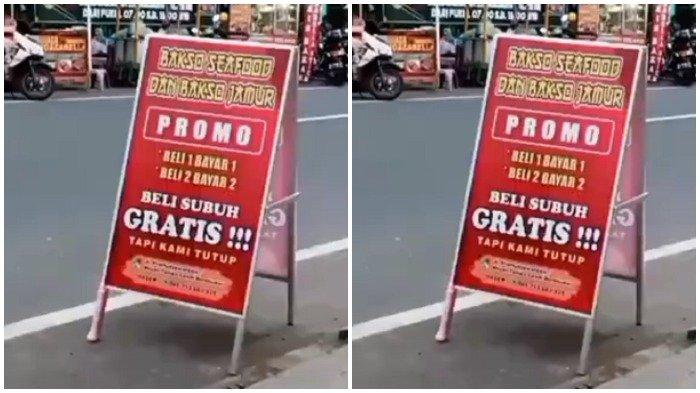 Dalam video yang diunggah melalui akun Instagram @video_medsos, terlihat sebuah banner warung bakso tersebut menawarkan promo.